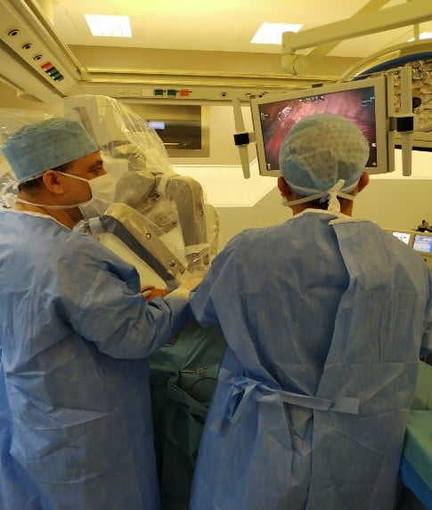 It has the same tiny incision and is similar to VATS. The surgeon operates with small fractions with the da Vinci Robotic Surger system. The surgeon performs the operation sitting at the console. A surgeon standing at the patient's bedside during the process helps the surgeon at the console. The surgeon operates on a 3D image, and cameras enlarge the operation area 10-12 times. These tooltips can rotate 540 degrees around their axis and mimic the wrist movements of the human hand. Removal of these mediastinal neurogenic tumors or masses by robotic surgery is more advantageous than VATS due to the abovementioned robotic features. With VATS, the tools work straight and are not flexible; with da Vinci the mass can be removed more comfortably and with fewer complications. When the tumor has an extension to a vital nerve and channel, we remove it without damaging the nerve with the help of the Robot.